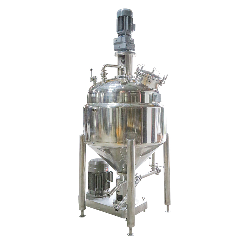 外循环均质系统是核心的,它集吸入、泵送、分散、以及CIP在线清洗多种功能于一身。两级的泵体设计让均质系统不仅可以提供物料搅拌的动力还可以提供强大的泵送能力,对高粘稠物料同样适用。外循环均质系统让水相和油相直接在均质系统中先乳化再被泵送到反应釜中搅拌,这样可以避免很多传统工艺的缺陷和不足。